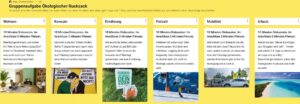Einen ersten Einblick über konkrete Maßnahmen vorab bietet dieser Blogbeitrag von Christine Müller Checkliste: Müllvermeidung. In einem Workshop erarbeiten die Teilnehmenden konkrete Maßnahmen und deren Umsetzung.